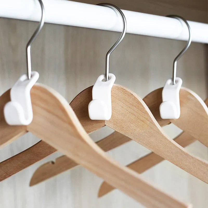 Une armoire encombrée et surchargée fait perdre du temps et des nerfs. Grâce à nos crochets de liaison pour cintres, le chaos et le manque de place appartiennent au passé ! Parfaits pour les petits appartements, les dressings ou pour faire sa valise de manière optimale en voyage. Ainsi, vos vêtements sont toujours bien rangés - sans devoir acheter de nouveaux meubles!