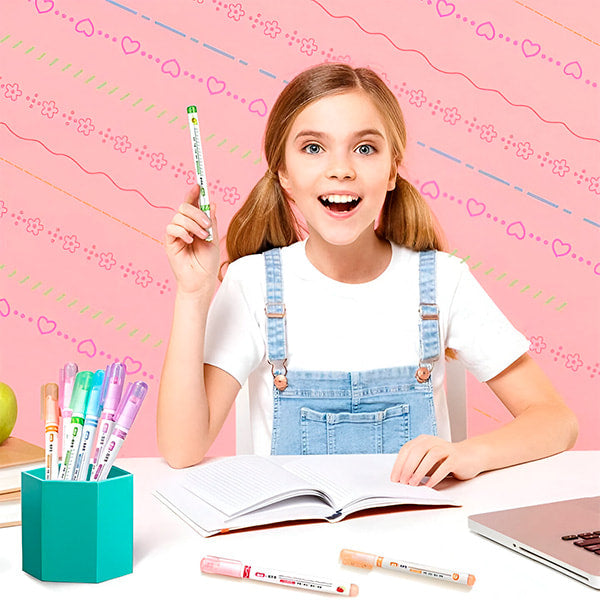 Découvrez une créativité sans limites avec les marqueurs de qualité supérieure pour artistes ! Ce set de six marqueurs uniques permet de réaliser de magnifiques dessins détaillés avec des motifs de lignes créatifs. Parfaits pour les notes, les croquis, le handlettering ou les bullet journal, ces marqueurs font briller tes idées!