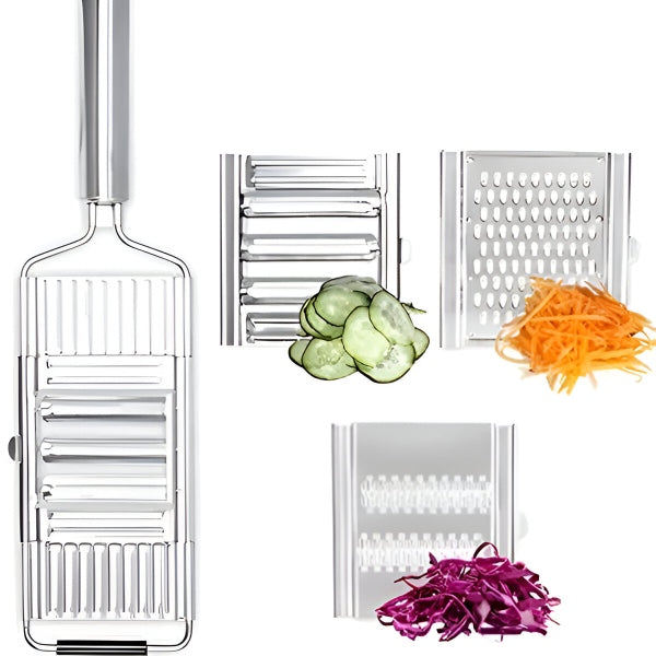 Facilitez-vous le travail et réalisez en un tour de main de parfaites coupes de légumes. Commandez dès aujourd'hui la râpe à légumes multi-usages 3-en-1 et découvrez comme il peut être facile de cuisiner!