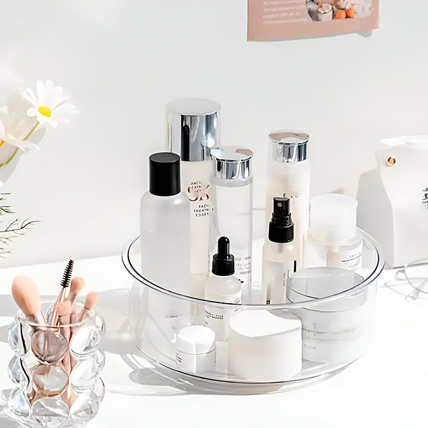 Avec l'organisateur rotatif à 360°, tu as toujours à portée de main tous les condiments, sauces, produits cosmétiques ou de nettoyage. Que ce soit dans la cuisine, le réfrigérateur ou l'armoire de la salle de bain, ce plateau tournant pratique permet de garder une vue d'ensemble et de gagner de la place. Plus besoin de chercher, il suffit de tourner pour trouver immédiatement le produit souhaité!