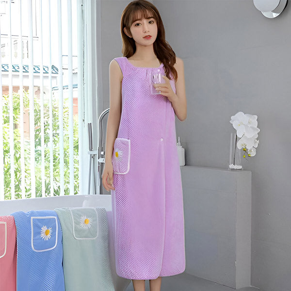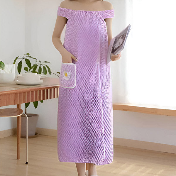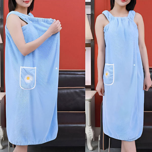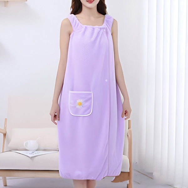 "Le peignoir est super doux et me sèche parfaitement après la douche ! Grâce à son design sans manches, il est totalement confortable et ne glisse pas!"
