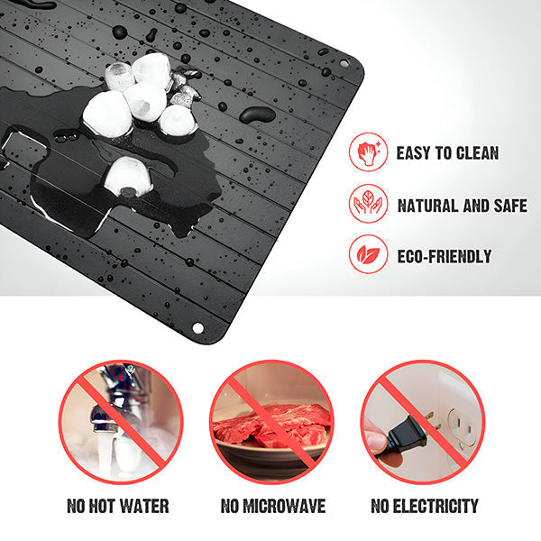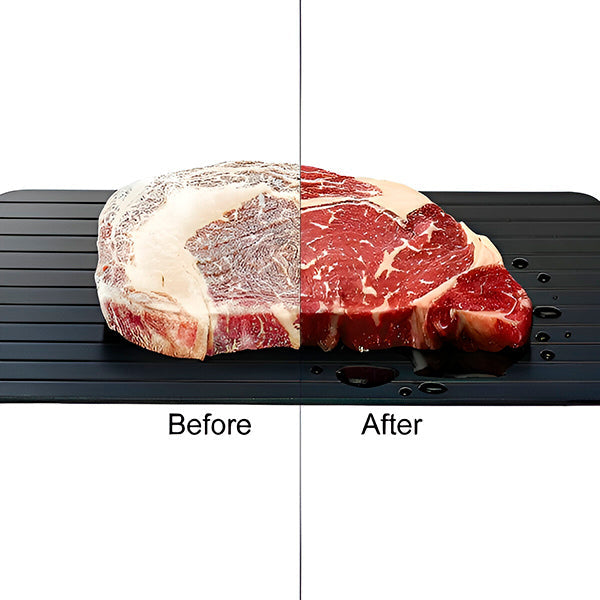 Les méthodes de décongélation traditionnelles, comme le micro-ondes ou l'eau chaude, peuvent sécher les aliments ou les réchauffer de manière inégale, ce qui altère leur goût et leur texture. Notre plaque thermique utilise une technologie innovante de conduction thermique pour décongeler les aliments de manière uniforme, sûre et sans consommation d'énergie. Parfait pour les repas spontanés ou lorsqu'il faut faire vite!
