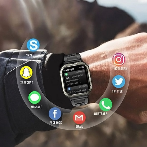Découvre la symbiose parfaite entre une technologie de pointe et une résistance sans compromis - avec la smartwatch tactique. Que ce soit lors de missions extrêmes en plein air, d'entraînements intensifs ou dans la vie quotidienne trépidante, cette montre est ton compagnon fiable dans toutes les situations.