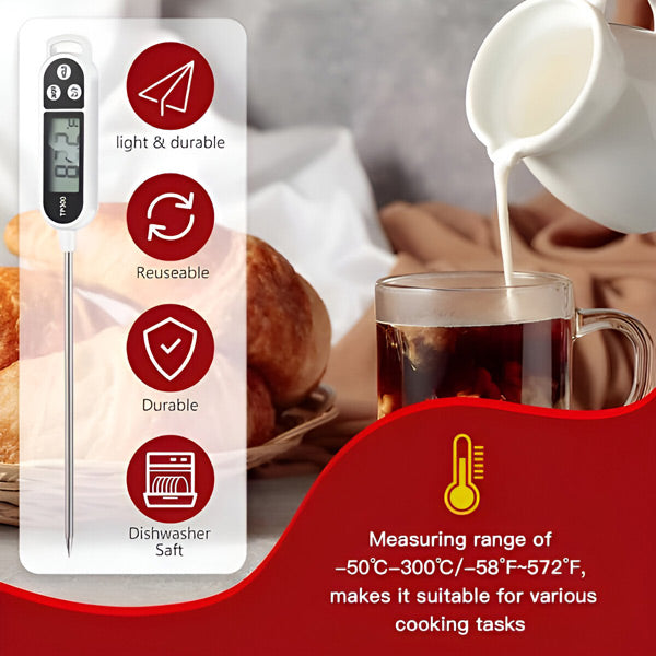 Idéal pour mesurer la température des viandes, liquides et pâtisseries.